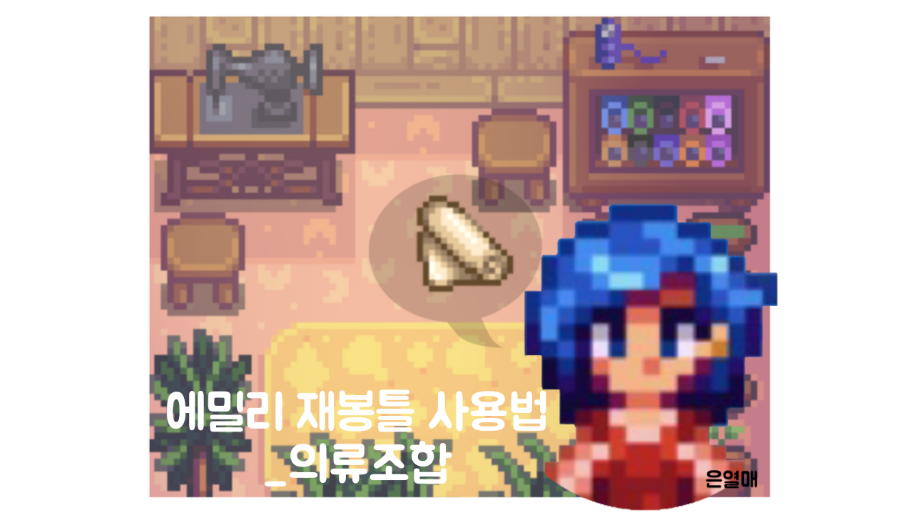 @스타듀밸리 1.4 PC 스타듀밸리_에밀리의 재봉틀 뽕빨빼기(사용법) ** 스타듀밸리 1.4 PC 버전을 이용해서 직접 만든 자료 입니다.(은열매 제작) 조합 하고자 하는 아이템 또는 의상(상의, 하의, 모자, 가면)을..