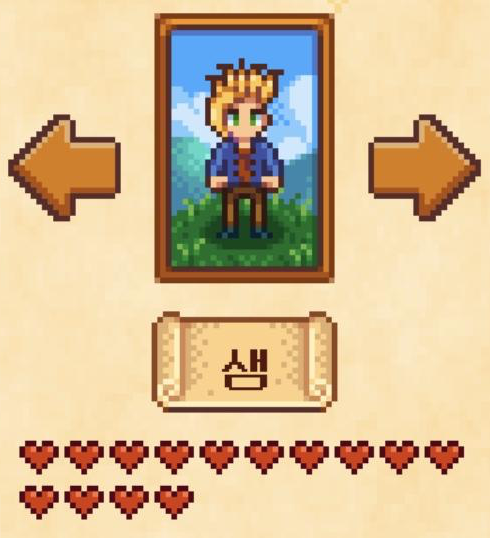 스타듀밸리가 배우자에 한하여 하트 2개 늘어 14개가 되었다.