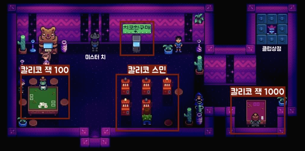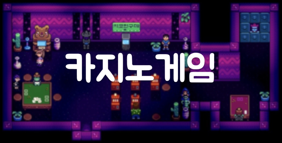 스타듀밸리 비밀 클럽 카지노! 슬롯머신과 카드게임으로 잭팟을 터뜨려 보자! 하지만 카지노는 아무나 들어갈 수 없다. ‘미스터 치’의 까다로운 클럽 가입 테스트를 성공해야 입장 할 수 있다. 카지..