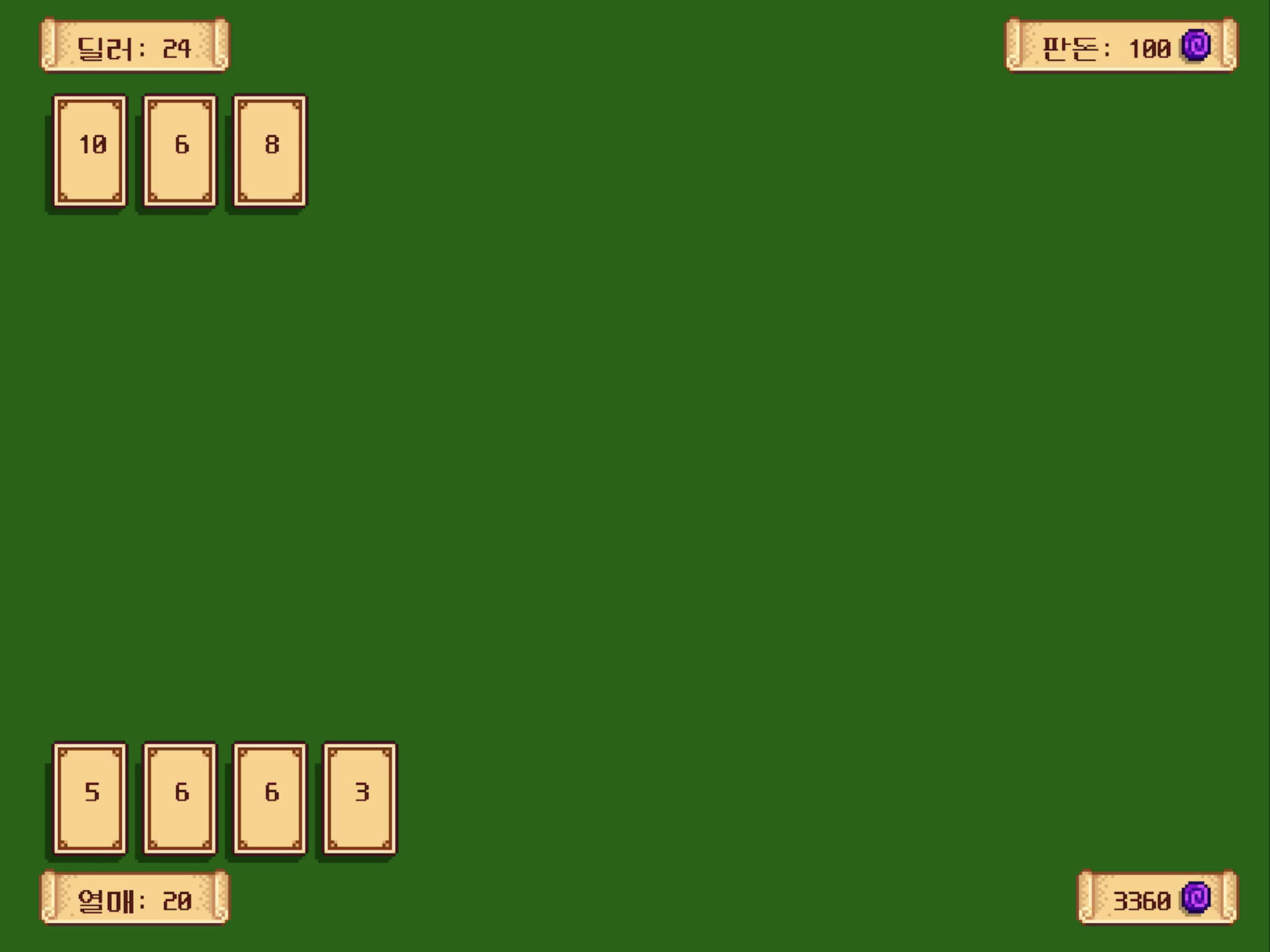 100 테이블에서는 판돈 100 코인을 걸고 시작한다.