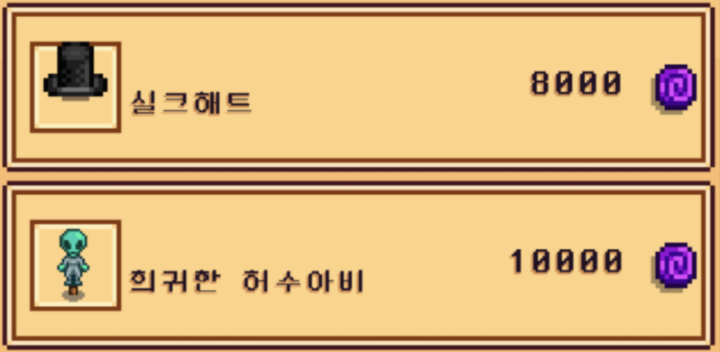 그리고 또 사야할 것. 실크해트 모자! 그럼 총 18000만 코인을 따야 한다.