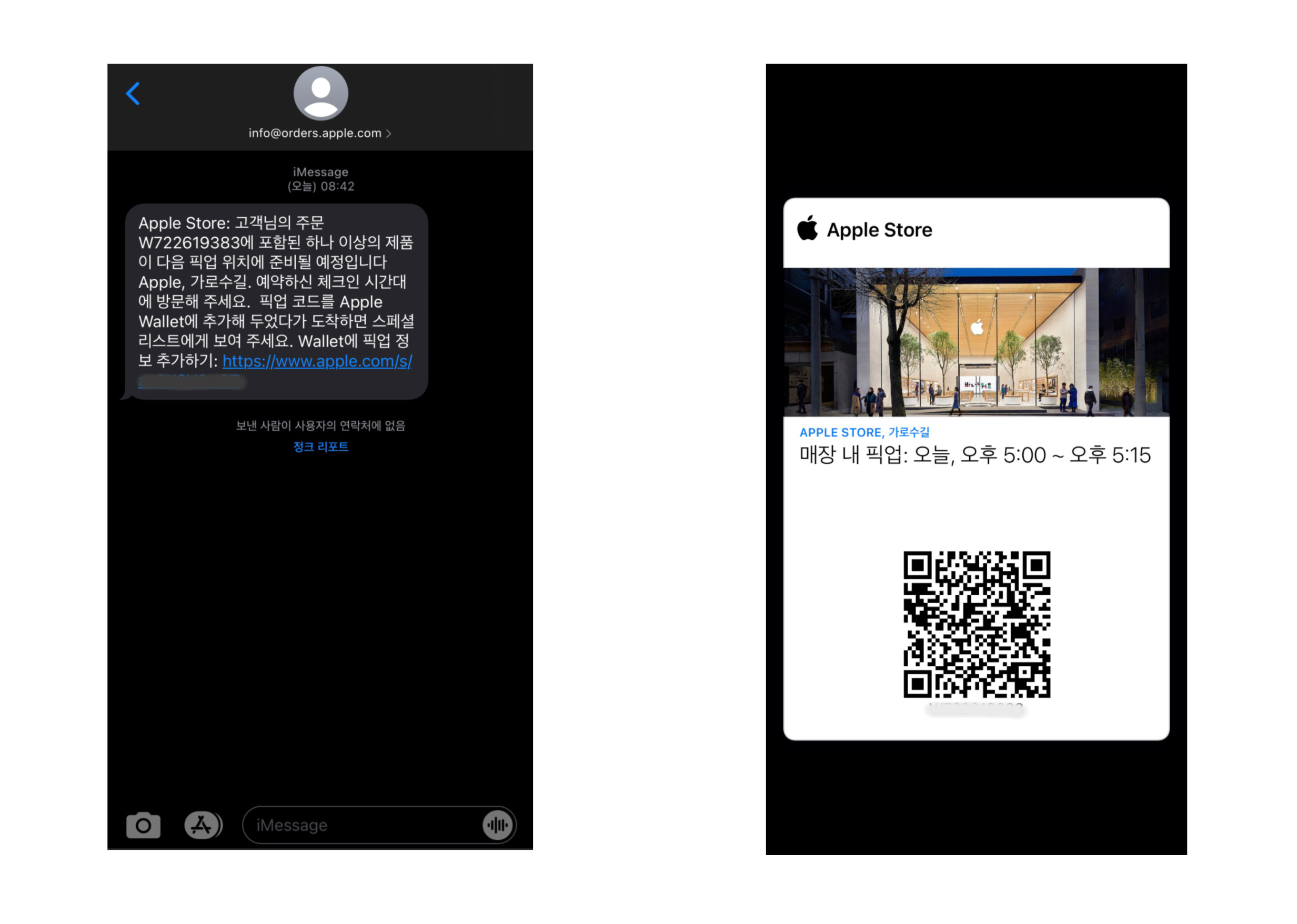 링크는 자동으로 Apple store 앱 또는 Wallet 앱에 저장된다.