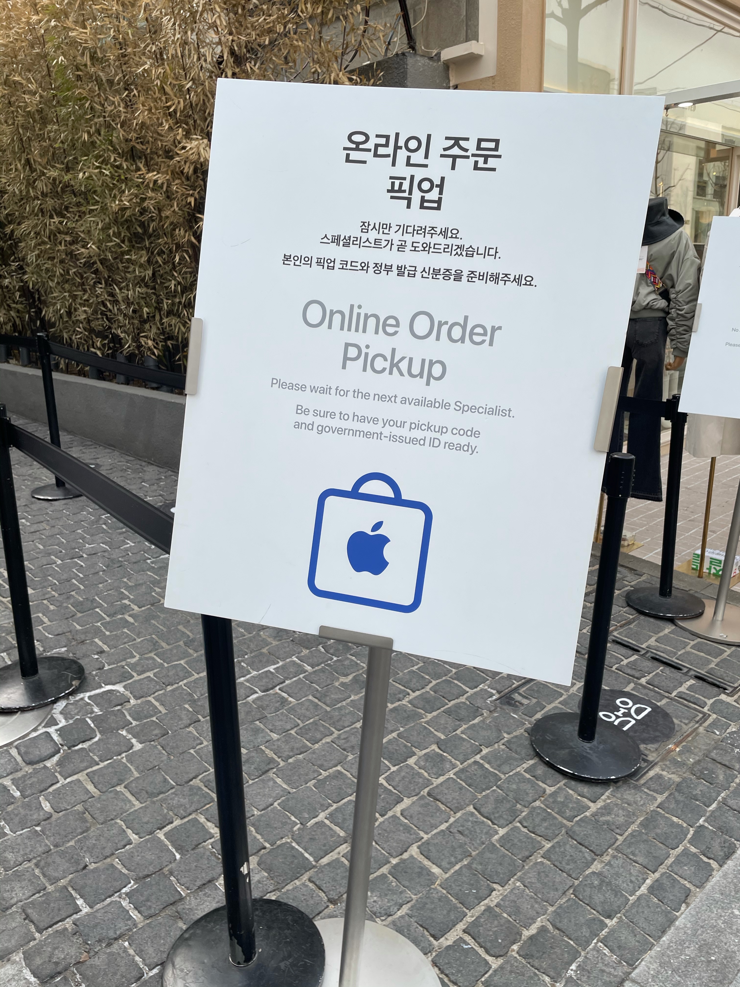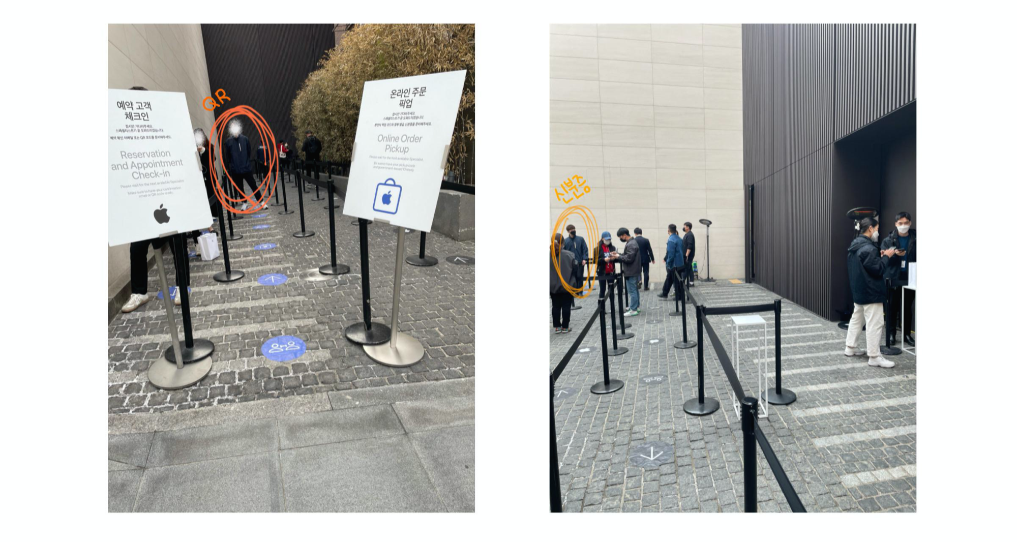 픽업 매장에 도착하면 일반 방문객 입장 통로와 예약 픽업 입장통로가 따로 분리되어 있다.