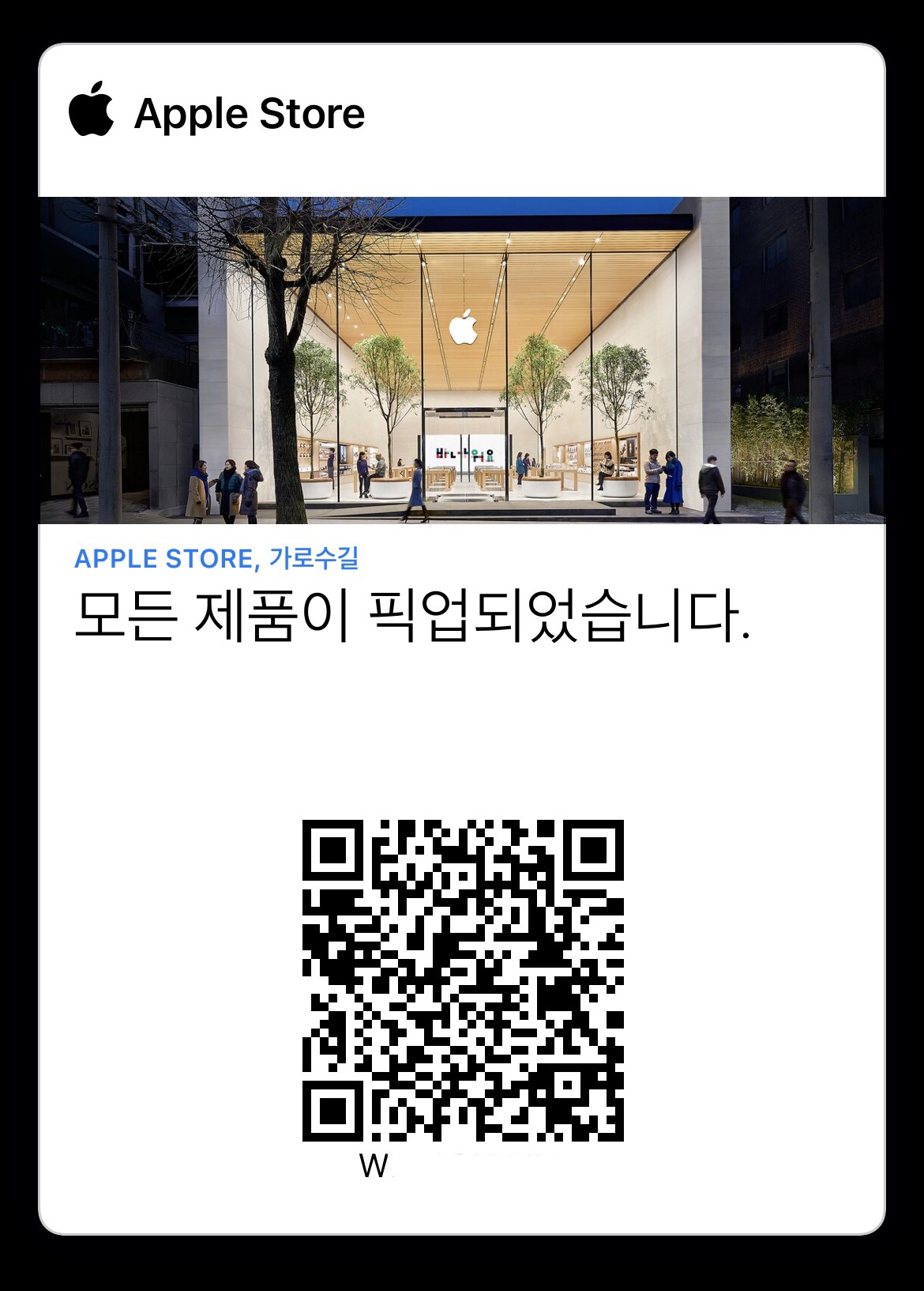링크를 타고 들어가면 픽업시 필요한 QR 코드를 확인할수 있다.