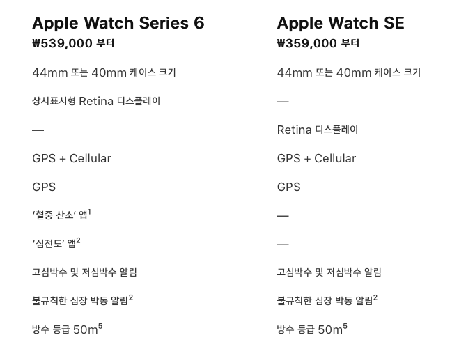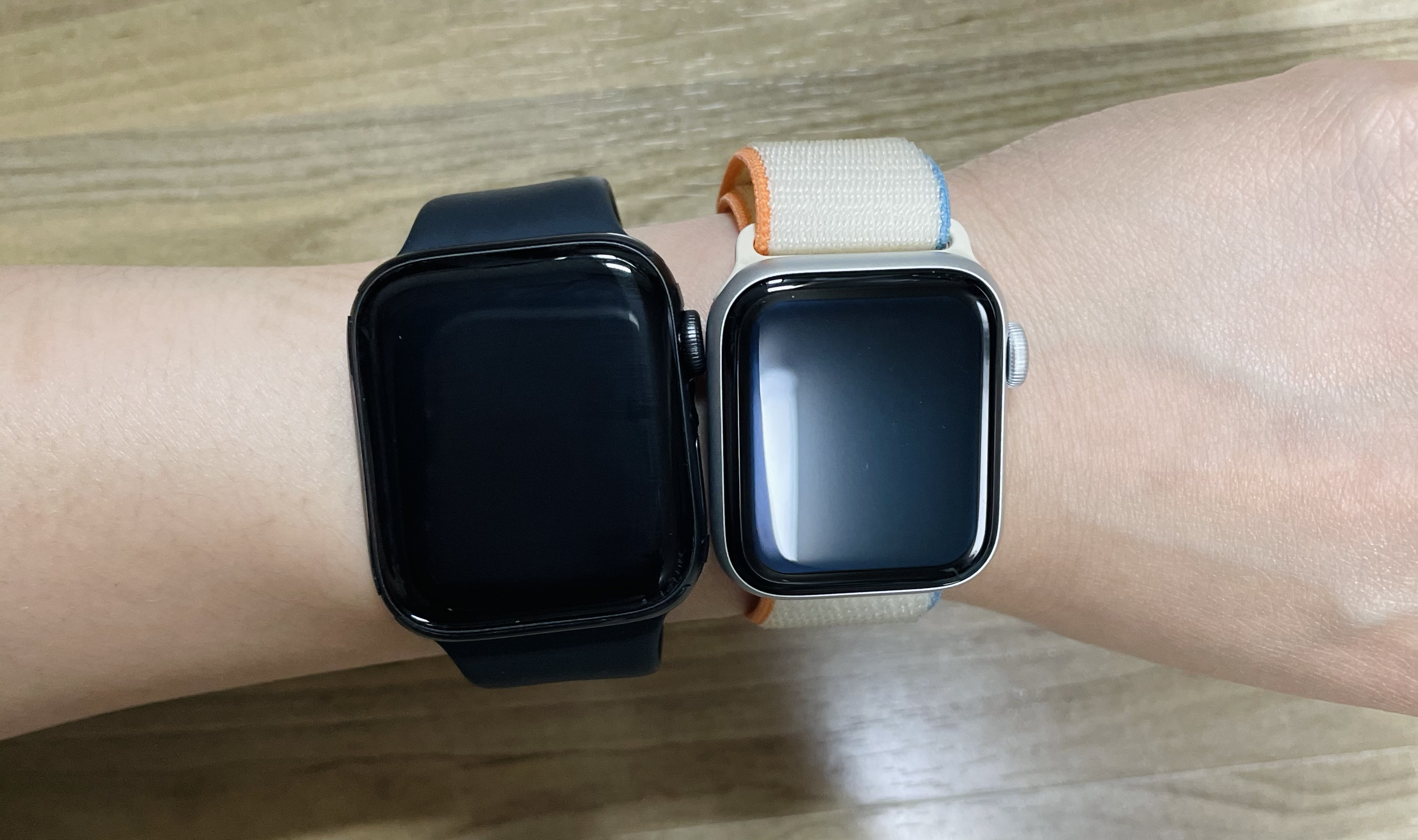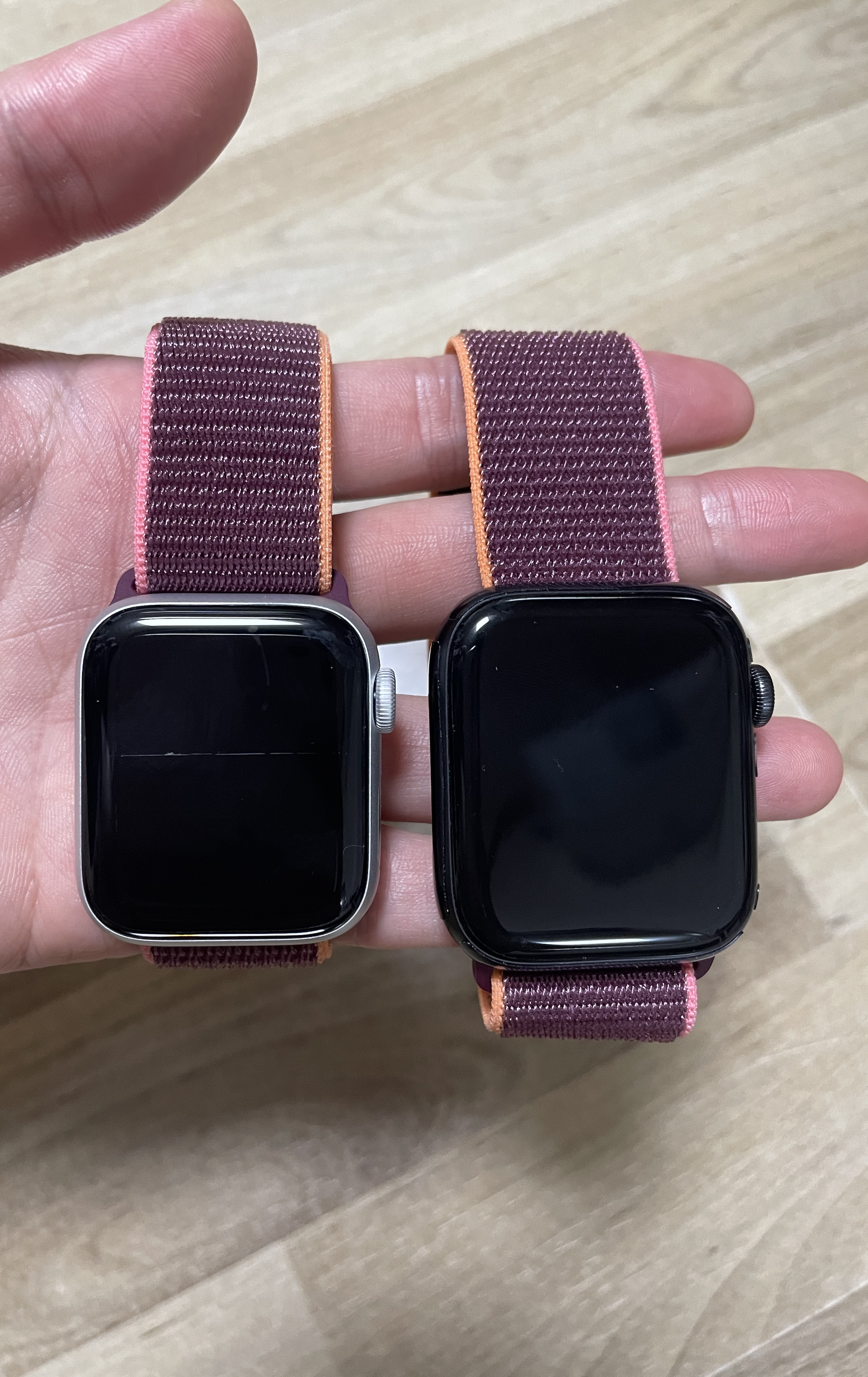 자매가 구매한 애플워치 6(40mm)와 쓰니의 애플워치 SE(44mm)를 비교해보기로 했다.