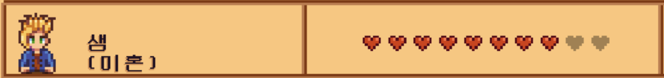 | 스타듀밸리_샘과 결혼해서 생활까지(샘 호감도 10 이벤트, 스포) (0) | 2020.02.22 |