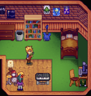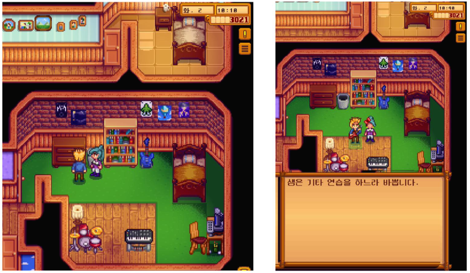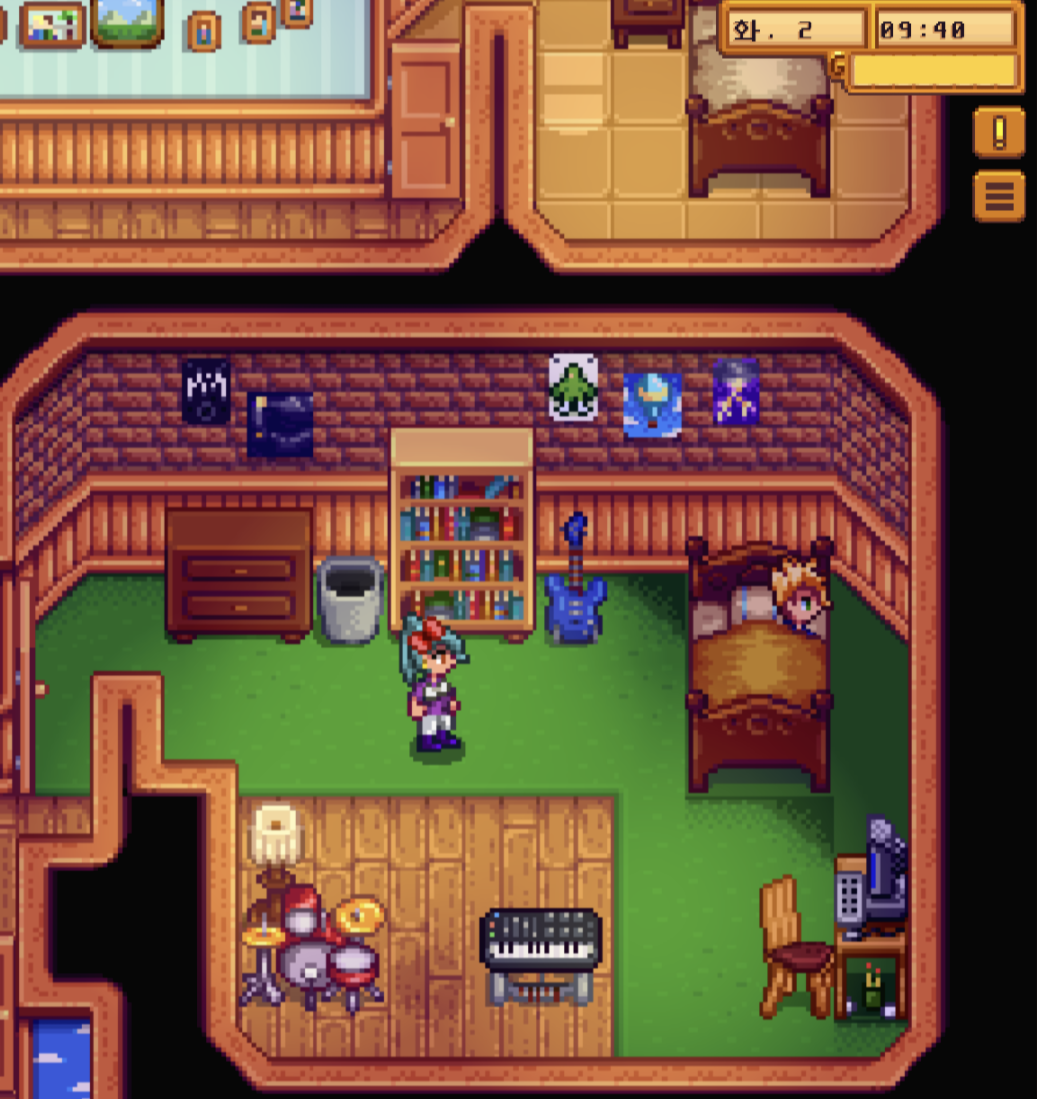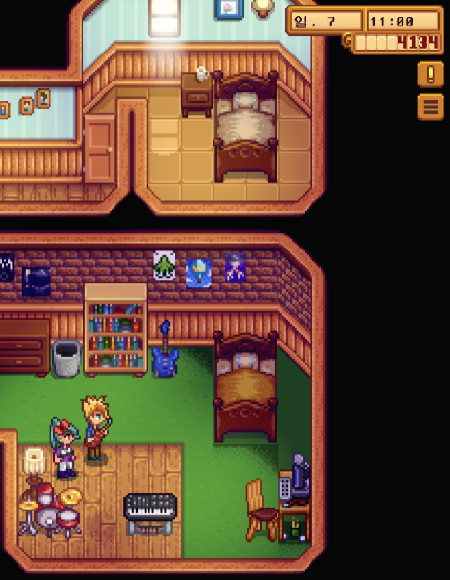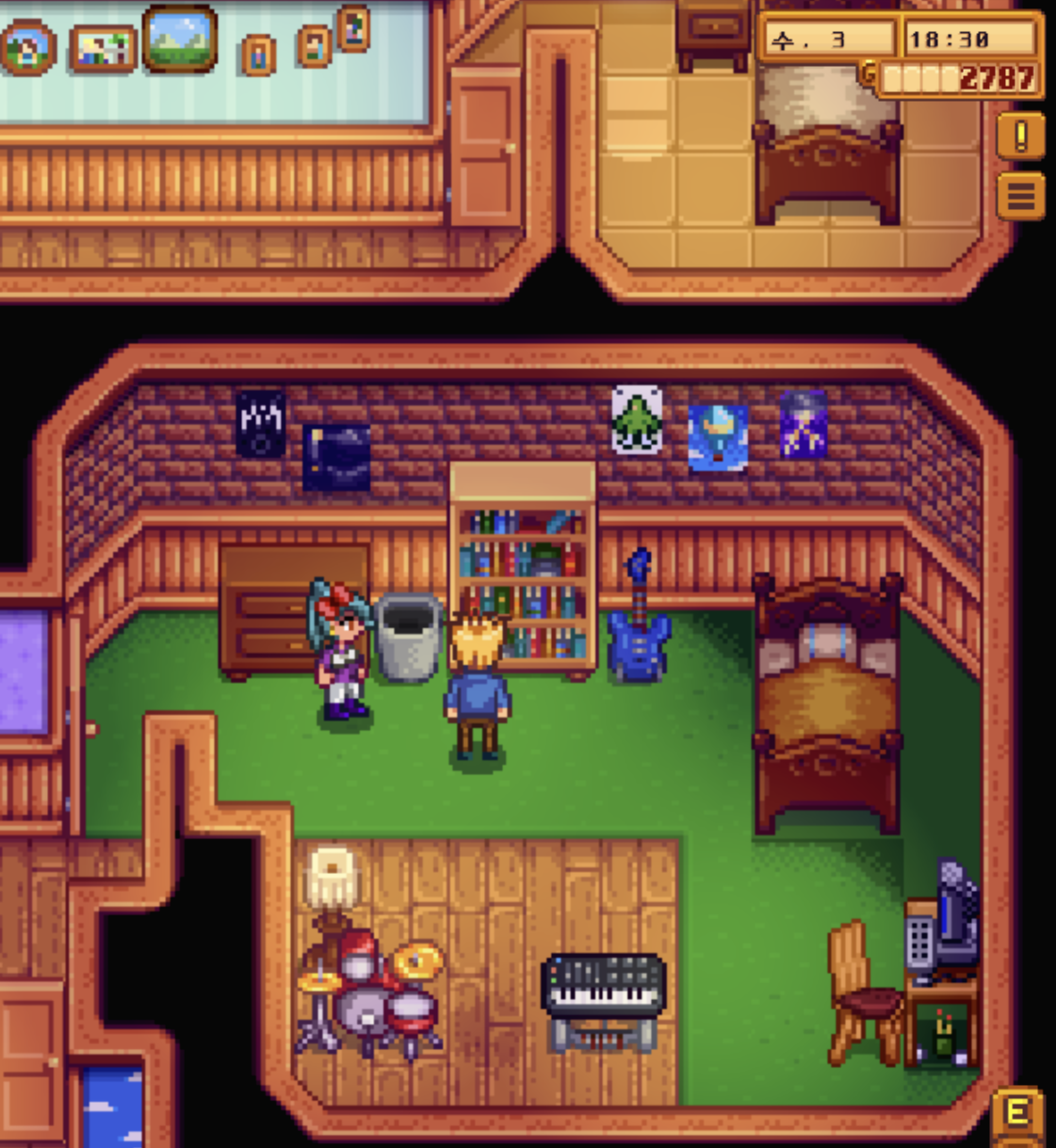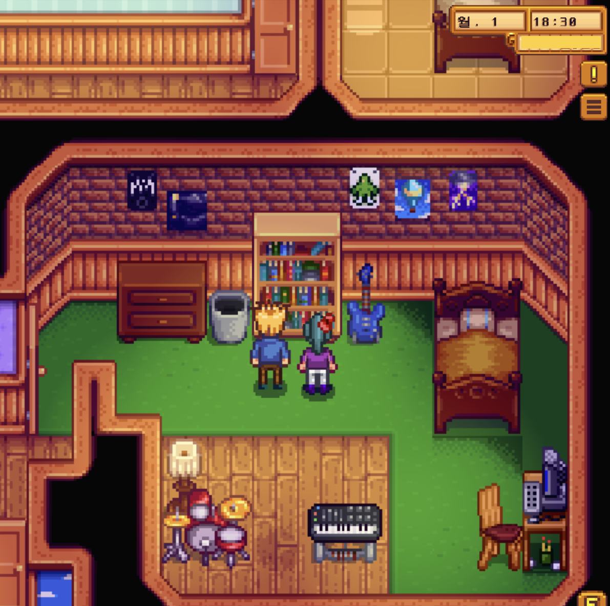 샘의 집에 들어 가면(호감도 ♥♥) 드럼과 키보드를 연주해 볼 수 있다.